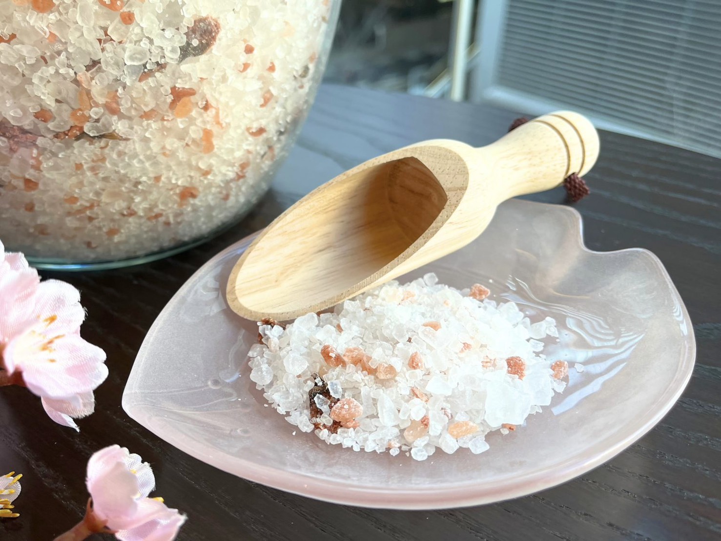 部屋でも桜を感じられる、かわいらしいオリジナルのバスソルトが用意されています!